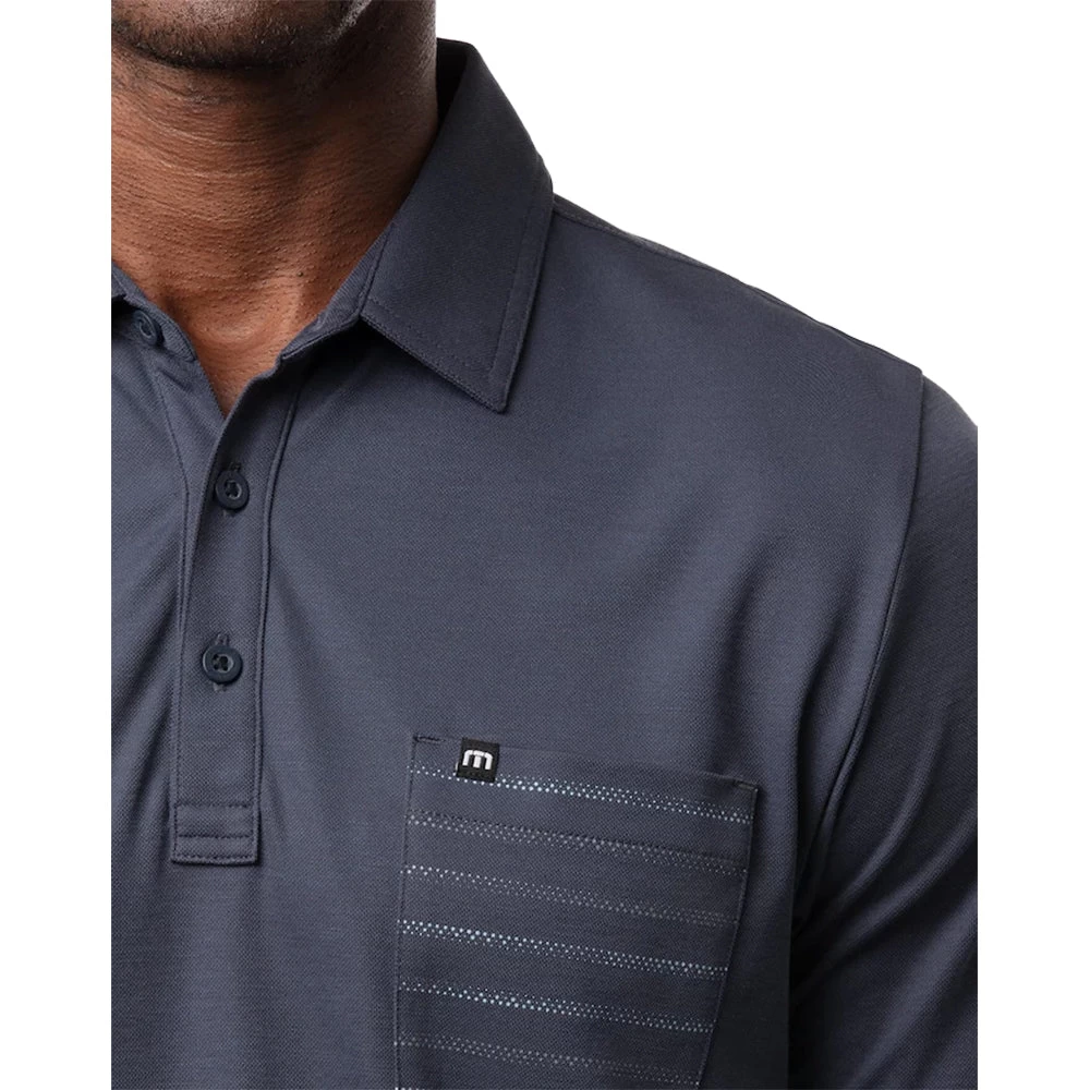Add essential styling to your wardrobe with the TravisMathew Brief Hiatus Golf Polo. This polo is built with an enhanced four-way stretch that allows you to swing comfortably for supreme comfort. The signature ombre dot chest stripe with unique pocket detailing and printed logo on back yoke combine with a wrinkle resistant component that will have you looking stylish on and off the course.
