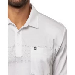 The TravisMathew Good Life Mens Golf Polo offers enhanced stretch and an ultra-soft feel to provide you comfort and freedom of movement throughout your day. Great to wear with shorts or pants. It features a self-fabric collar with three-button placket, geometric dots on chest, and pocket on left chest.