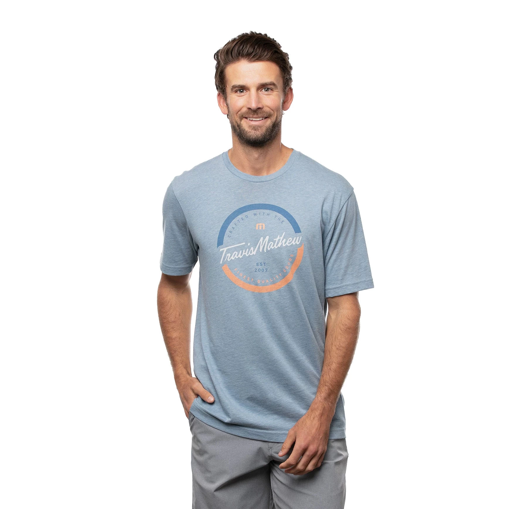 Look cool and feel good no matter what you are doing in the TravisMathew Time Lapse Mens Golf T-Shirt. This shirt features a crew neck, relaxed feel, and a graphic on the front.
