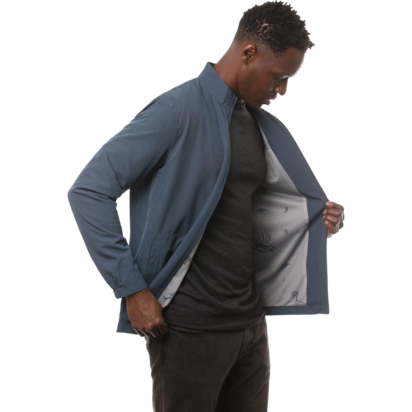 When the weather changes slip on the TravisMathew Storm Chaser Jacket and keep on playing. The Storm Chaser is built with an enhanced four-way stretch that fits comfortably and allows you to swing in total comfort. There are side entry pockets and a chest pocket with zipper that are great for storing an extra ball or two. There is a printed lining and its also wrinkle resistant to have you looking good from the first tee to the final green.
