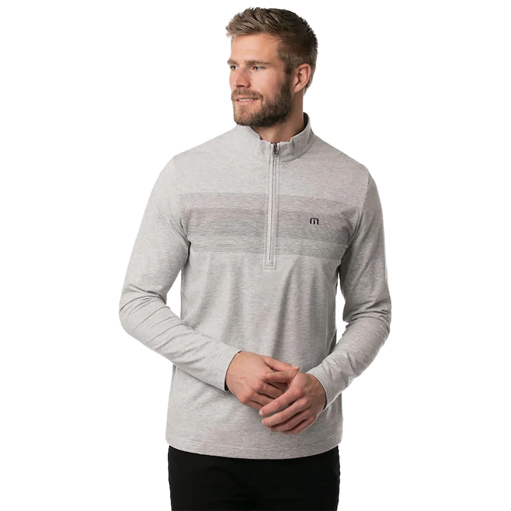 Keep warm during chilly rounds with the TravisMathew Tequila Sunrise Golf 1/4 Zip. This QZ is built with an enhanced four-way stretch that allows you to swing comfortably for supreme comfort. The unique three-color chest stripe, hidden pocket with zipper and printed logo on back yoke combine with a wrinkle resistant component that will have you looking stylish on and off the course.